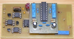 Despite the fact that we discuss here a narrow band VLF radio receiver, at the InFlaMo project we call this receiver type a single frequency SID monitor. The motivation for this somehow incorrect name giving was to outline the fact that this SID monitor is recording data (field-strenght) from only one transmitter station (assuming that the recording band width is narrow enough to avoid any overlays from other transmitter station frquencies). To archive this goal we utilize a self-designed and relatively easy to understand and set-up circuit board (see picture on the left). The analog data are transmitted to a modern LINUX-micro-PC. The data can be read and processed with ordinary script languages. This concept offers a large scale of opportunities for educators and K-12 students to explore the world of radio wave propagation, electronics and computer sciences.